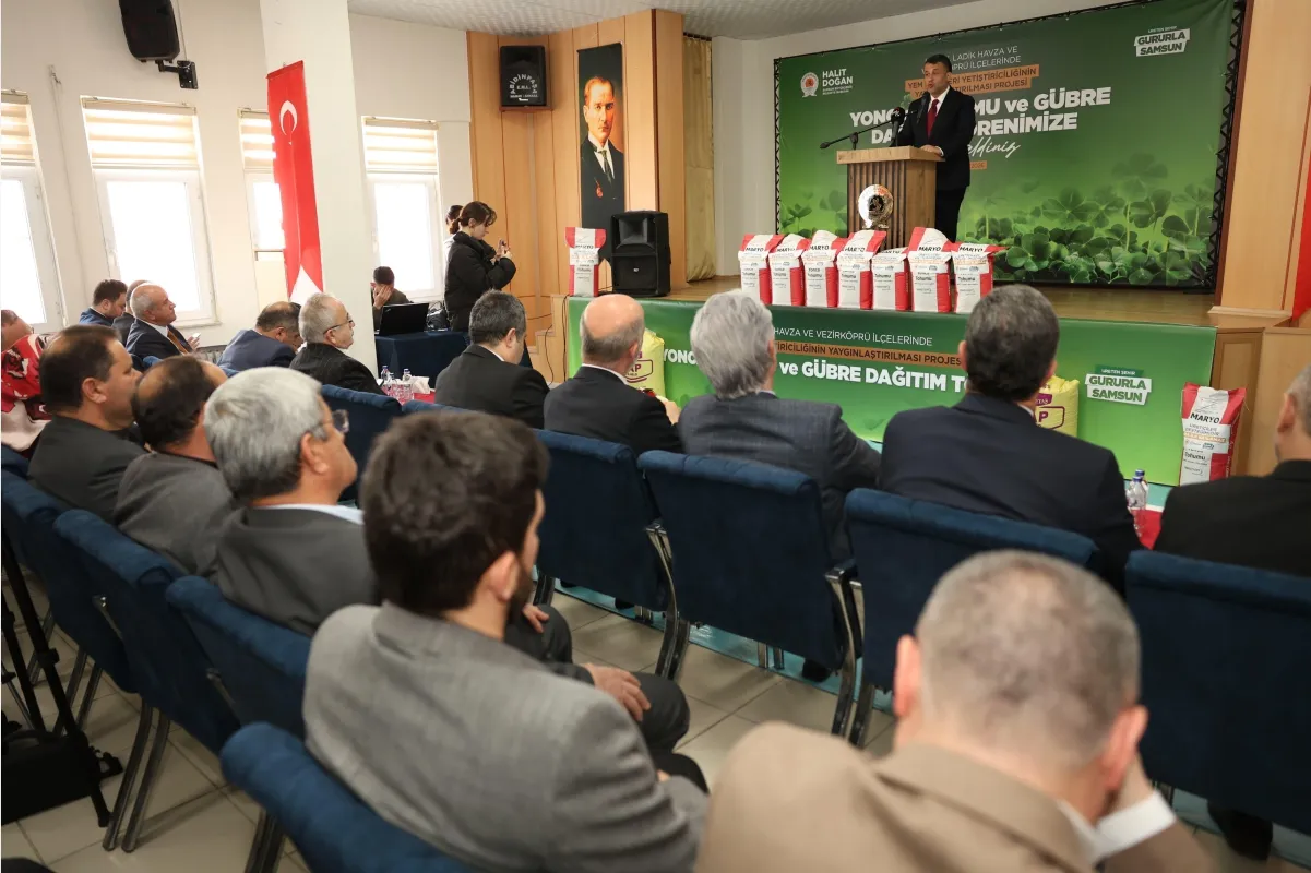 Tarımın şehri Samsun’da tarımsal üretimi ve üreticiyi her daim destekleyen Samsun Büyükşehir Belediyesi “Yem Bitkileri Yetiştiriciliğinin Yaygınlaştırılması Projesi” kapsamında Yonca Tohumu ve Gübre Dağıtım Töreni gerçekleştirdi. Samsun Büyükşehir Belediye Başkanı Halit Doğan, “Üreticimiz yeter ki üretsin. Biz her zaman, her koşulda onların yanında olmaya, yükünü paylaşmaya devam edeceğiz” dedi.